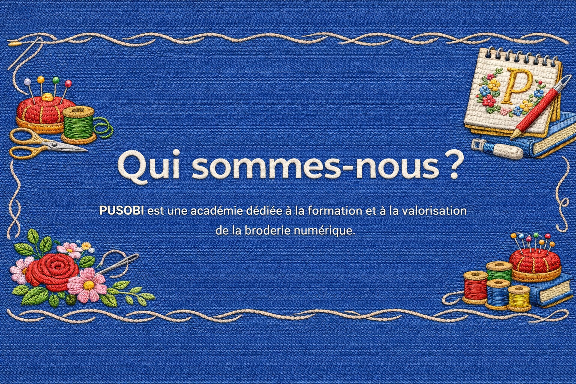 Faire de PUSOBI une référence africaine et internationale dans la formation en broderie numérique, en alliant tradition, innovation et professionnalisme.